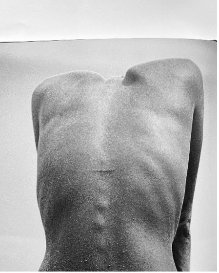 시각 인류학을 토대로 신체를 촉각적으로 담아 인쇄 및 출간물로 드러내는 작업을 하는 피에로Pierrot. 신체를 전체적으로 드러내기보다 특정 부위에 번갈아 중점을 두어 작업한다. 해변의 모래를 묻힌 허벅지, 헝클어진 머리카락에 가려진 한쪽 눈, 물방울 맺힌 복부 등 다양하게 있지만, 그중에서 가장 눈길이 가는 부위는 날개뼈와 척추뼈다. 피에로가 신체를 촉각적으로 드러내는 이미지 작업을 한다는 점을 고려할 때, 툭 튀어나온 날개뼈와 척추뼈는 두 번 세 번 반복하여 보게 되는 요소다. 튀어나온 날개뼈와 척추뼈는 그만큼 말랐다는 것이기에 연약함을 부각시키지만, 동시에 시각적으로 날카롭고 공격적으로 보인다. 마치 아이작 셀람Issac Sellam의 봉제 라인과 등판에 붙는 얇고 날카로운 지퍼 라인을 연상시킨다.